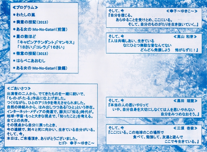 【ひとは じぶんの ものがたりを いきている】より、演者2人と共に「今、語りたいこと」を